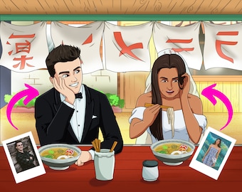Anime Illustration Custom Anime Portrait Anime Portrait Drawing Anniversary Gift Gift For Boyfriend Wedding Anime Personalized Disney